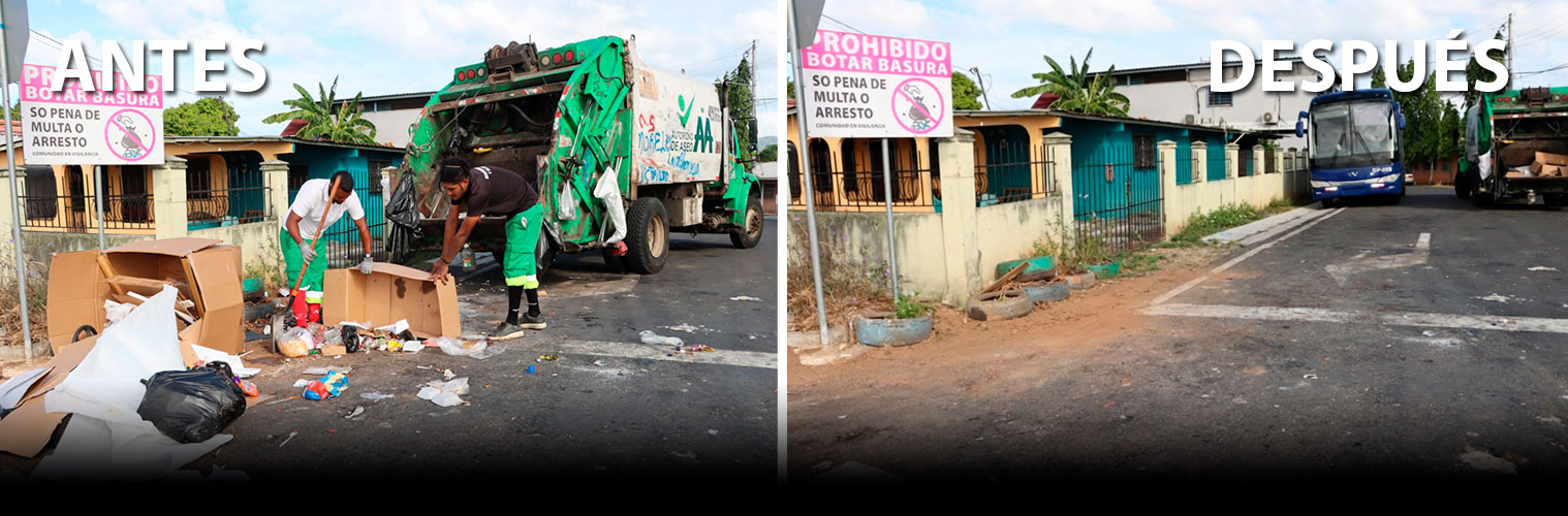En el distrito de San Miguelito, la AAUD refuerza la limpieza de sus nueve corregimientos mediante labores de barrido con el apoyo del Plan Libertad, mientras se ejecutan acciones de recolección en el corregimiento de Belisario Frías.