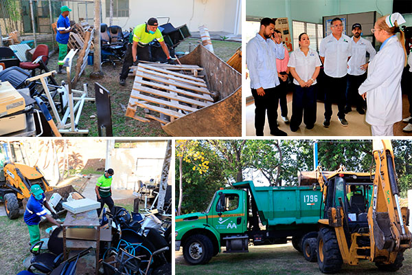 Durante esta visita, la AAUD, brindó apoyo con la recolección de gran cantidad de enseres, entre estos, equipo mobiliario de oficina, plomería, metales, baterías, monitores, impresoras, teclados, llantas, cables, lavamanos, entre otros.