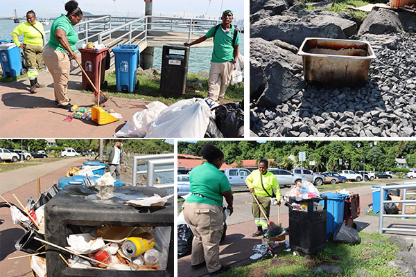 Más de 25 puntos con tinaqueras para colocar los desperdicios producto de las actividades recreativas y ventas fueron limpiados hoy por hormiguitas de la Autoridad de Aseo Urbano y Domiciliario.