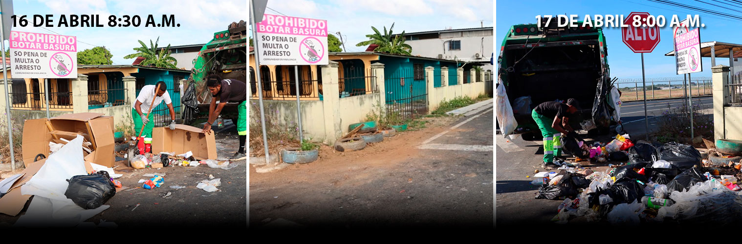 En un mismo punto del corregimiento de Tocumen se evidencia cómo, a pesar de las labores de recolección que lo dejan limpio en un día, en poco tiempo vuelve a convertirse en un foco de acumulación de desechos, reflejando la inadecuada disposición de residuos por parte de algunos residentes. Se hace un llamado a la comunidad a tomar conciencia y utilizar correctamente los espacios destinados para la basura, evitando la formación de estos puntos de contaminación.