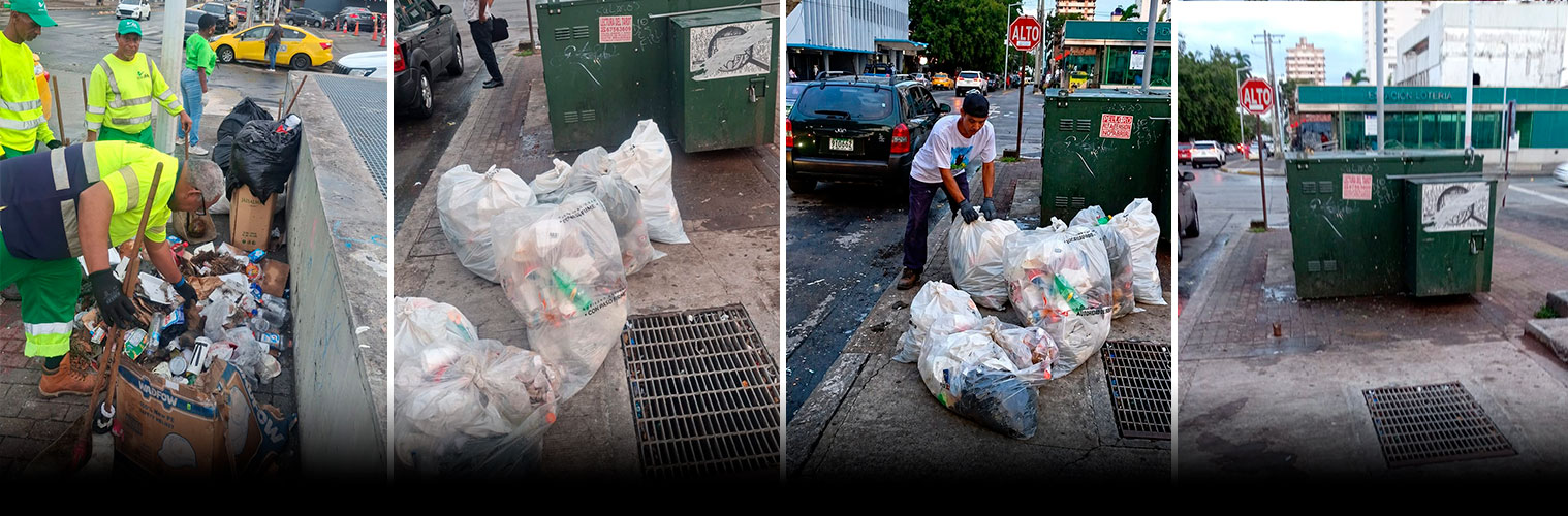 Labores de recolección y limpieza se realizaron en la Avenida Justo Arosemena y calle 17 del corregimiento de Santa Ana, logrando recuperar y mantener estos espacios en condiciones adecuadas.