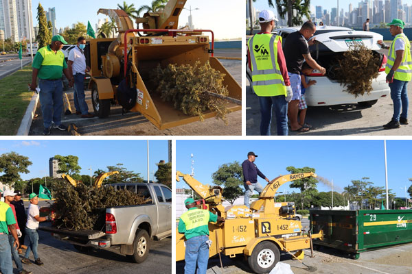 Ciudadanos acudieron esta mañana al llamado de la Autoridad de Aseo para desechar los arbolitos naturales, usados en estas Navidades, en el centro de acopio, instalado en la Cinta Costera en el Mirador del Pacífico.