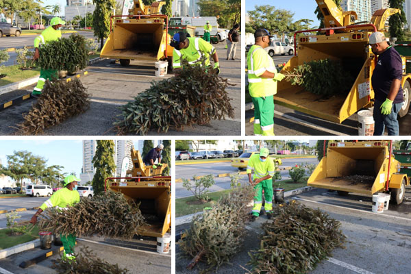 Cientos de ciudadanos de distintas áreas residenciales de la ciudad capital, han acudido al llamado de la AAUD para llevar sus arbolitos a puntos de acopio dispuestos con cajas roll-on roll-off y la máquina trituradora para este fin.