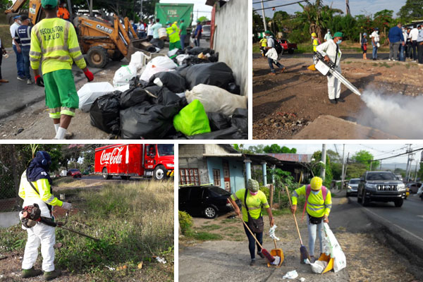 Dos retroexcavadoras, cuatro volquetes, cuatro rejilla y dos compactadores, apoyaron las labores de recolección que incluyó fumigación, corte de grama y barrido.