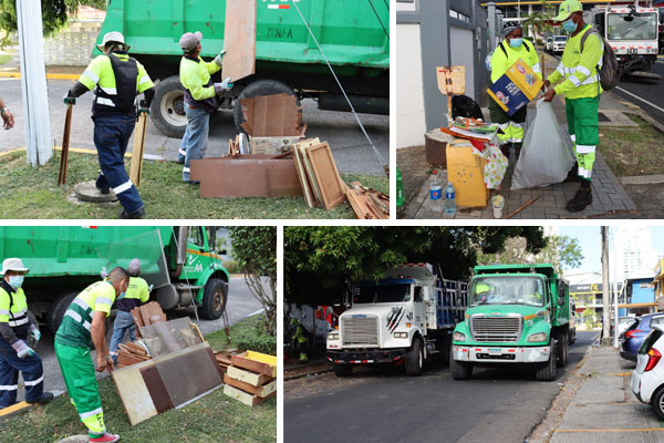 Retroexcavadoras, volquetes y una barredora mecánica, apoyaron el trabajo de hormiguitas, recolectores y personal de la Junta Comunal de Bella Vista, encabezados por la HR suplente Caterina Sáenz y Edwin Jaramillo, Jefe de Ornato.