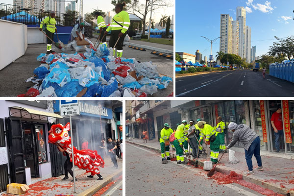 Una vez culminada esta primera jornada se dirigieron al popular Barrio Chino, para apoyar en las labores de limpieza en este punto, donde las calles se vistieron de rojo por los residuos, al utilizar fuegos artificiales para celebrar la llegada del Año Nuevo Chino 2024.