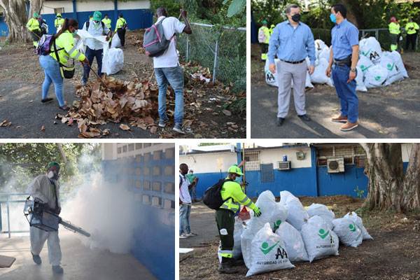 Desde tempranas horas de este miércoles, el personal de Proyectos Especiales de la Autoridad de Aseo Urbano y Domiciliario, realizó una jornada de limpieza en la Escuela Manuel Espinosa Batista en el corregimiento de Parque Lefevre, en apoyo al Ministerio de Educación, para un retorno seguro a clases presenciales.