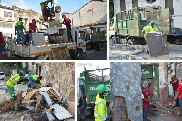 Sin embargo, debido a la estructura de las calles de El Casco Antiguo y San Felipe, se recolectaron los desechos en los camiones rejillas, para luego ser depositados a los volquetes que se encontraban esperando en el parque Herrera.