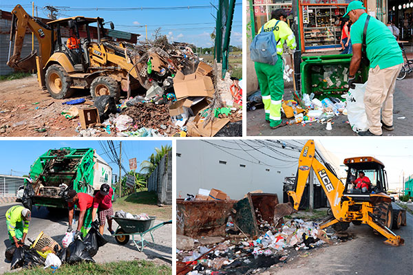 En un trabajo coordinado entre retroexcavadora y camión recolector lograron dejar las tinaqueras libres de desechos en este sector.