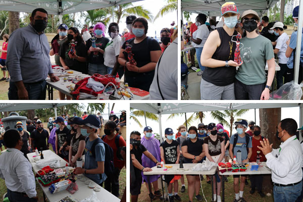 Jóvenes estudiantes y profesores de Educación Pre-media procedentes del Estado americano de Oregon participaron en un taller de confección de arte a partir de material usado dictado por Fomento y Promoción a la Cultura de Aseo de la AAUD, con el fin de incentivar una cultura de reutilización de materiales y la importancia de mantener las costas libre de desechos, durante la Jornada de Limpieza en el Mirador de Costa del Este.
