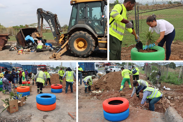 Más de 50 trabajadores de la Autoridad de Aseo y de Tocumen S. A., unieron esfuerzos para realizar un parque temático con llantas y siembra de plantas.
