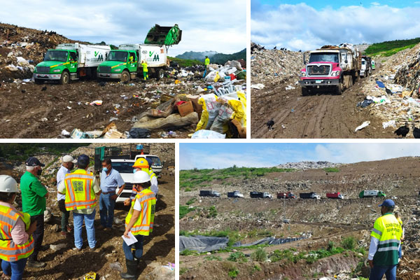 El Ingeniero Álvaro Díaz director de Servicios Técnicos y el Director de Operaciones de la Autoridad de Aseo, en con junto con un equipo de ingenieros ambientales, inspeccionan la zona de tiro del Relleno Sanitario de Cerro Patacón.