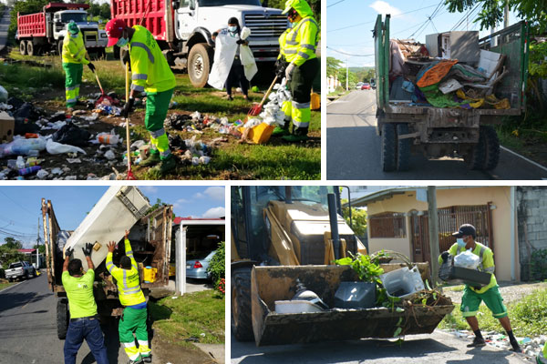 Unos seis volquetes, dos retroexcavadoras, y seis carros rejillas trabajaron desde tempranas horas de este jueves con personal de la AAUD y de la Junta Comunal, en labores de recolección, fumigación, barrido y corte de grama.