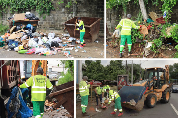 Ante las fuertes lluvias en días pasados, la mañana de este martes, la Autoridad de Aseo Urbano y Domiciliario, realizó dos operativos de limpieza y recolección de basura orgánica y enseres de manera simultánea, en áreas vulnerables a inundaciones del distrito capital.