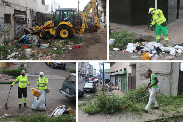 Los alrededores de la Plaza 5 de Mayo, incluyendo puentes vehiculares, Cl. Patio Roché, Avenida Nacional, Avenida 4 de julio, La Frangipani, Avenida B, Central de Calidonia, fueron los sectores que recibieron la jornada de limpieza, que resultó entre 10 a 12 toneladas de desechos.