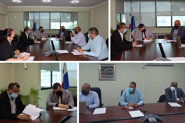 Presentes en la reunión, Carlos Ábrego, Secretario General; Álvaro Díaz, Director de Servicios Técnicos y Jorge Luis Carrasquilla, Director de Asesoría Legal de la AAUD. Luis Donadío, asesor del Despacho Municipal y Maidir Miller, Juez de Aseo de San Miguelito.