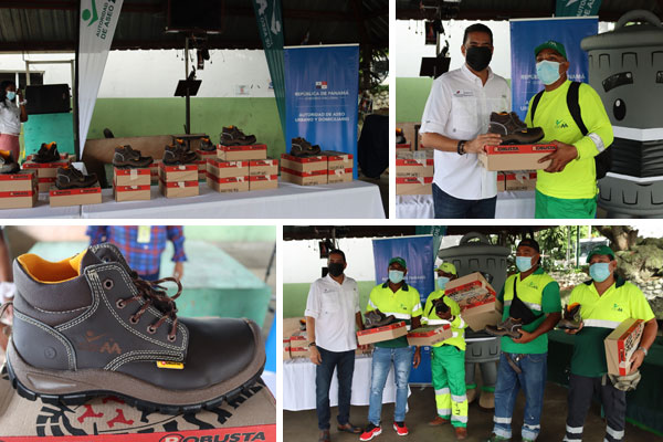 El administrador general de la Autoridad de Aseo Urbano y Domiciliario, Pedro Castillo, completa la entrega de uniformes para este periodo 2021, con unos 3,084 pares de botas de trabajo para el personal de barrido y operaciones de la institución.