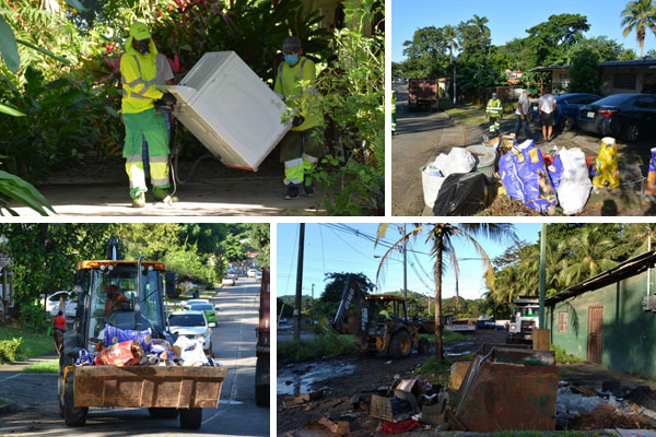 Para el sector de Diablo se realizó la recolección de podas, enseres, chatarras y desechos residenciales. Se contó con la participación de personal de recolección, barrido, equipo rodante de tres camiones volquetes, una retroexcavadora, tres camiones rejillas.