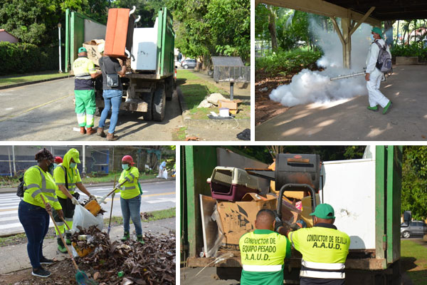 El personal de Proyectos Especiales de la AAUD, procedió a realizar barrido de áreas verdes, aceras y avenidas, corte de grama y fumigación.