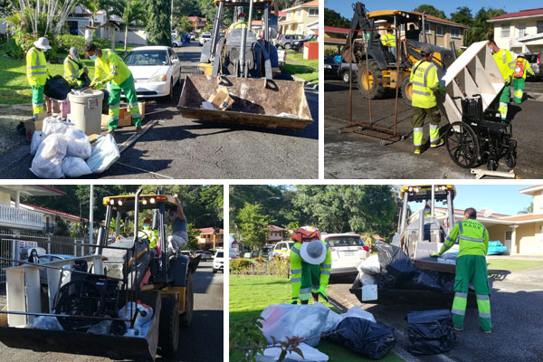 Silla de ruedas, restos de cartón, cajas, muebles de madera, plásticos, restos de metales, entre otros enseres y basura orgánica fue lo que se recolectó en el sector Clayton; además de esto, el personal de Proyectos Especiales de la AAUD, procedió a realizar barrido de áreas verdes, aceras y avenidas; corte de grama y fumigación.