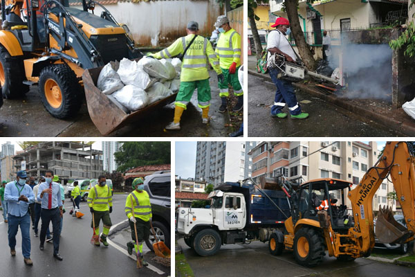 Tres volquetes, una retroexcavadora, dos rejilla y un compactador, apoyaron las labores de aseo de más de 49 trabajadores de la AAUD entre recolectores, hormiguitas y personal de la Junta Comunal, en la jornada que incluyó fumigación, corte de grama y barrido.