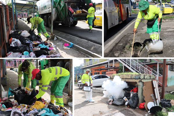 "Con Paso Firme", un pie de fuerza de más de 50 trabajadores, entre hormiguitas, recolectores, conductores y equipo rodante de la Autoridad de Aseo Urbano y Domiciliario AAUD, limpió hoy el sector La Riviera en el corregimiento de Pedregal.