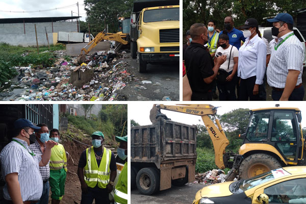 En un trabajo interinstitucional con el objetivo de clausurar un vertedero clandestino en Nuevo Progreso, donde la Gobernación de Panamá coordina en conjunto con la Autoridad de Aseo Urbano y Domiciliario, Mi Ambiente, Ministerio de Salud, Banco Hipotecario Nacional, Municipio de San Miguelito, Saneamiento de la Bahía, Juntas Comunales de Ernesto Córdoba y Belisario Frías, Revisalud, dirigentes comunitarios y residentes.