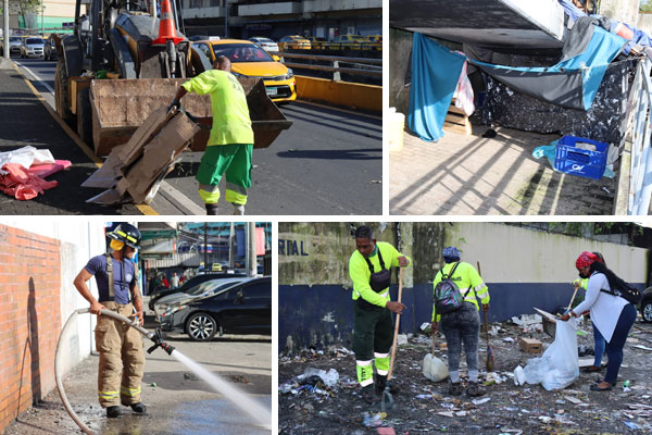 Para limpiar el puente peatonal ubicado en la Ave. 4 de julio, fue necesario el apoyo de la Policía Nacional, debido a que orates e indigentes dificultaban las tareas de recolección. Con la colaboración de camión cisterna del Cuerpo de Bomberos, se logró que los puentes peatonales de la Ave 4 de julio y el adyacente a la Asamblea Nacional, quedaran en óptimas condiciones para su uso.