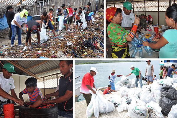 En la jornada de limpieza de playa, se recogieron desechos plásticos (botellas y chancletas) y foam. La basura recogida fue llevada a tierra firme en un lugar adecuado para disponerla de forma correcta. Se entregaron bolsas biodegradables para la recolección de los residuos.